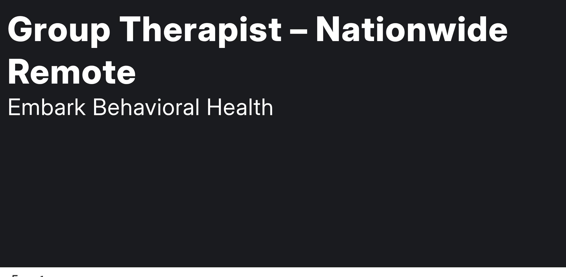 At Embark Behavioral Health, we are dedicated to combating the rising rates of suicide, depression, and anxiety through exceptional mental health treatment. Our Group Therapist position plays a crucial role in our Virtual Intensive Outpatient Program (IOP), which makes vital, life-saving therapy accessible to those who need it most. If you are passionate about making a meaningful impact in the lives of clients and their families during their formative years (ages 12 to 34), we invite you to become part of our extraordinary team of multidisciplinary specialists who are transforming therapy into a vibrant virtual experience, providing critical support and guidance from the comfort of home.