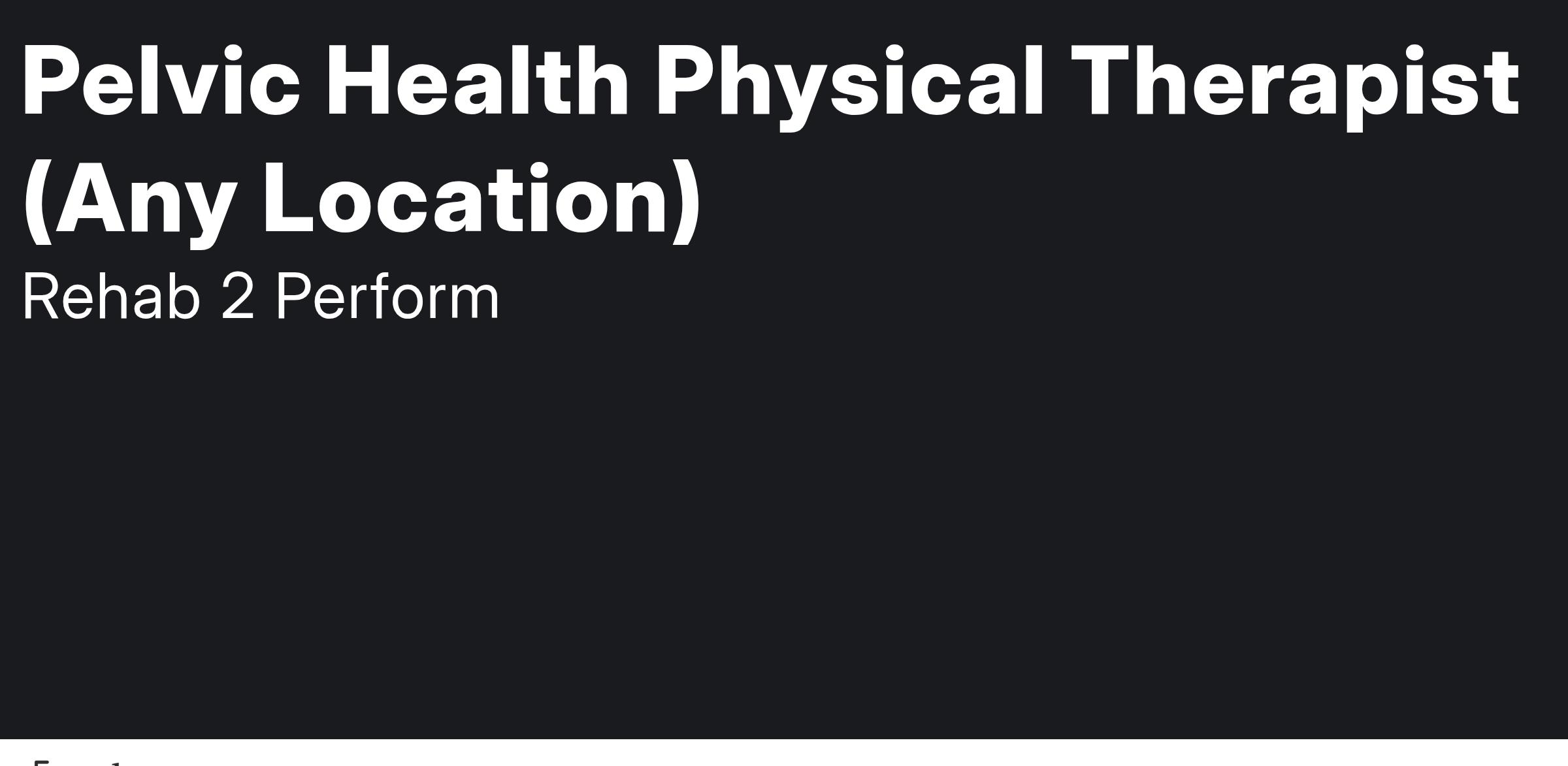 Rehab 2 Perform is a Team of Physical Therapists on a mission to help people Perform For Life! The ideal candidate is a team player who wants to join a group of passionate clinicians that embody a growth mindset and truly deliver a patient-centered experience with rehabilitative care!